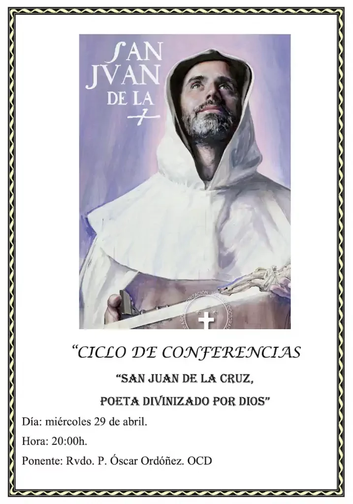 Con motivo del Año Jubilar de San Juan de la Cruz, la parroquia de Stella Maris acogerá un ciclo de conferencias dedicado a profundizar en la figura y espiritualidad del santo carmelita. La tercera conferencia se celebrará el miércoles 25 de marzo, a las 20:00 h, bajo el título “San Juan de la Cruz, poeta herido y sanado por Dios”, y estará a cargo del Rvdo. P. Óscar Ordóñez, OCD. Este ciclo pretende ofrecer un