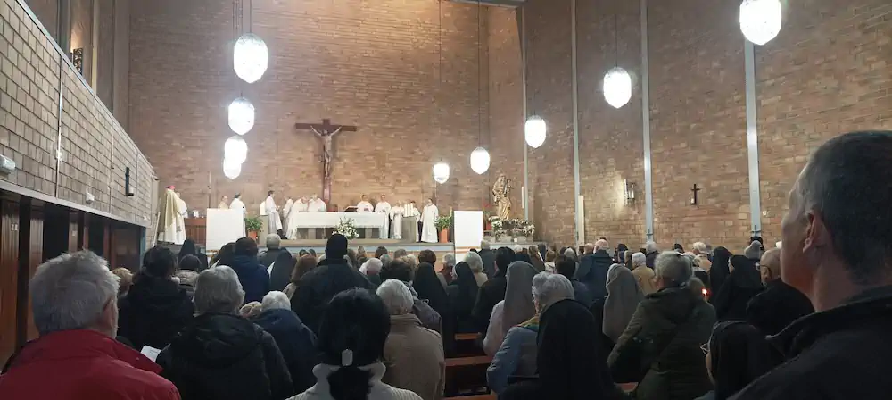La celebración, presidida por nuestro Obispo D, José Antonio Josué, acompañado por nuestro Obispo Emérito D, Jesús Catalá, toda la Comunidad Carmelita Descalza de Stella Maris así como sacerdotes de otras comunidades religiosas, contó con una amplia representación de la vida consagrada de la diócesis, desde la clausura como las carmelitas descalzas o las clarisas hasta la vida activa, como las Misioneras Eucarísticas de Nazaret, las Adoratrices o las Hermanas de la Cruz y la participación de todos los laicos que nos encontrábamos allí. Vivimos una jornada de agradecimiento y alegría, un reflejo de la sinodalidad de la Iglesia que quiere vivir al servicio de Dios y de los hermanos.